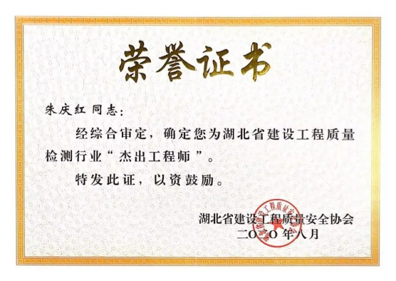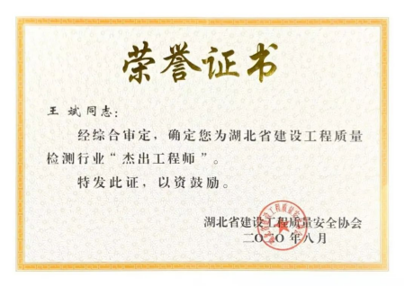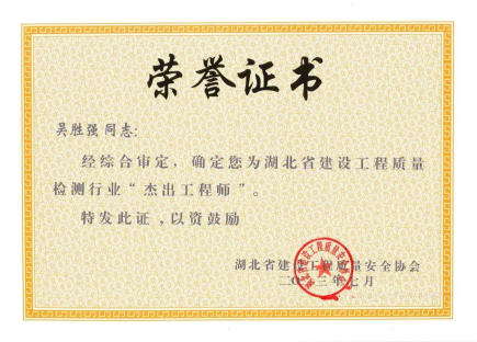 湖北省建設工程質量檢測行業(yè)杰出工程師