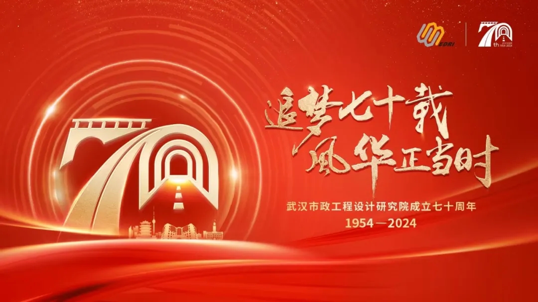主視覺ICON以數(shù)字“70”為創(chuàng)意主體,造型設(shè)計(jì)厚重沉穩(wěn),通過路、橋、隧等城市建設(shè)元素交融滲透,象征武漢市政院七十年與城市共生共發(fā)展的春華秋實(shí),體現(xiàn)武漢市政院七十年與時代同頻共振的光輝歲月。