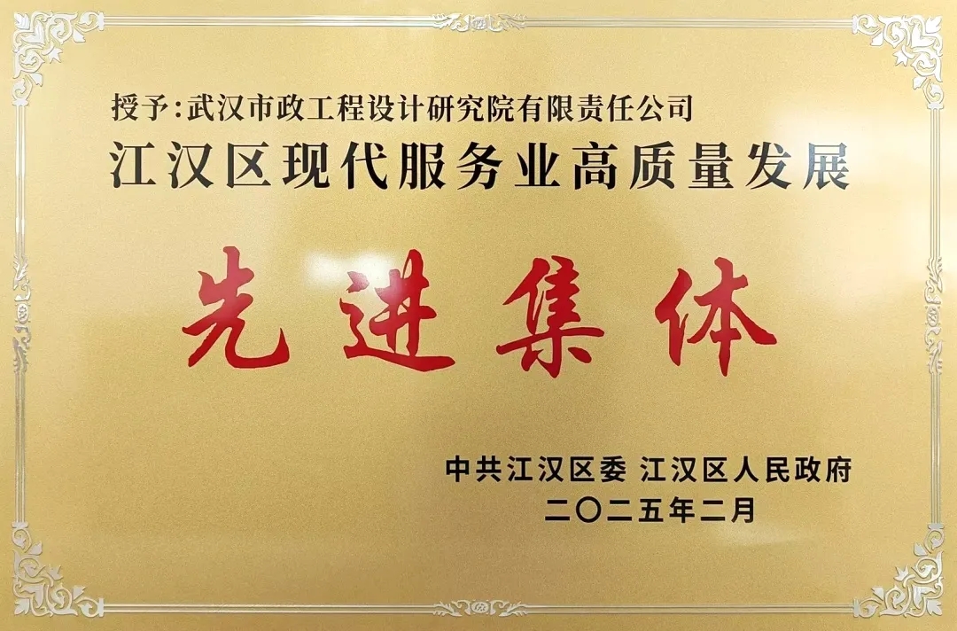 ? ? 近日,江漢區(qū)召開加快現(xiàn)代服務(wù)業(yè)高質(zhì)量發(fā)展大會,表彰轄區(qū)企業(yè)和企業(yè)家在推動江漢區(qū)高質(zhì)量發(fā)展中做出的突出貢獻(xiàn)。武漢市政院榮獲“現(xiàn)代服務(wù)業(yè)高質(zhì)量發(fā)展先進(jìn)集體”榮譽稱號,成為獲得此項殊榮的3家設(shè)計企業(yè)之一。