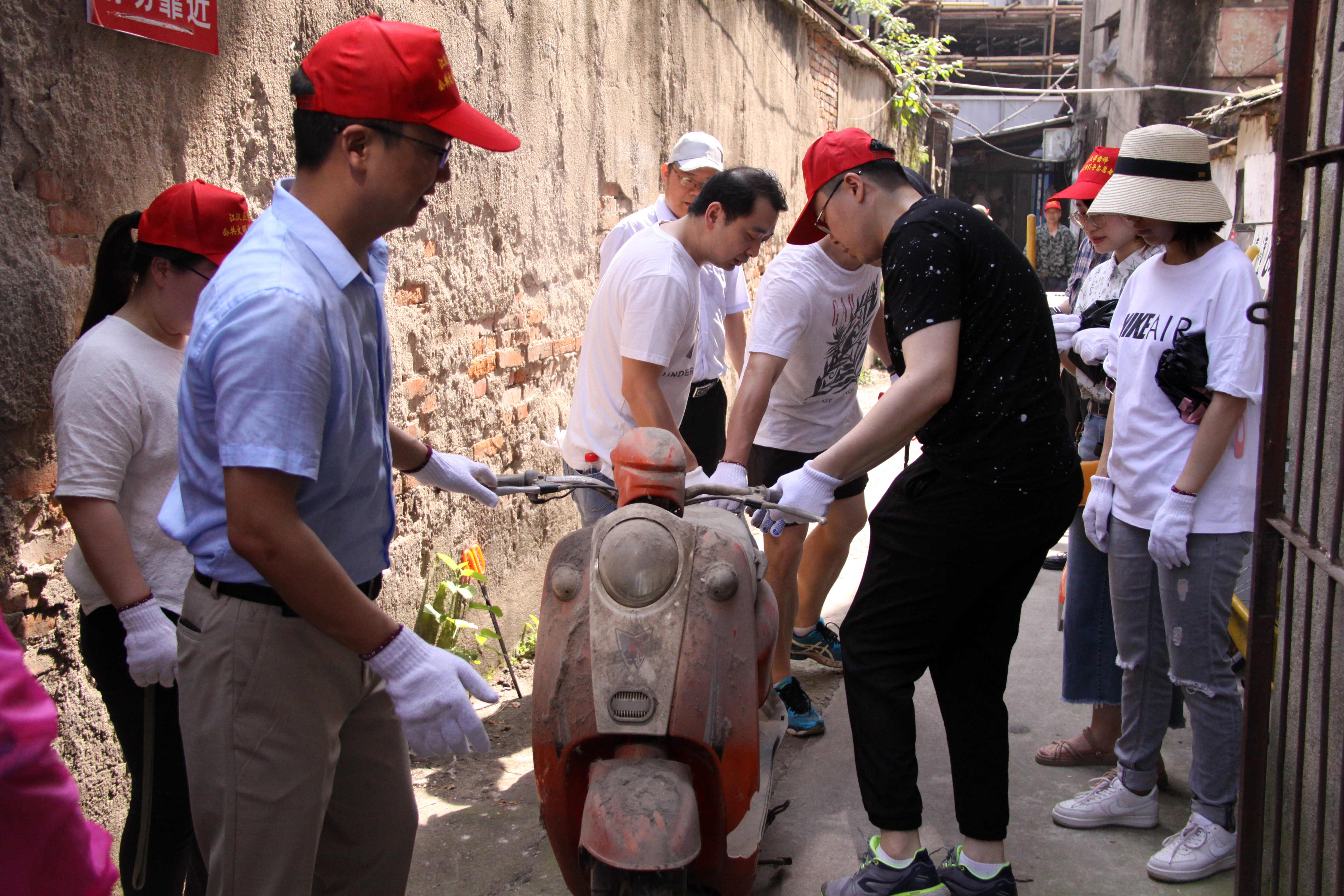 ??? 上午9時,公司志愿者們手拿清掃工具準時到達指定任務(wù)小區(qū)。烈日炎炎,但大家依然熱情高漲,分工明確、配合默契,小區(qū)的各個角落都留下志愿者們忙碌的身影。經(jīng)過集中清理,路面干凈整潔、公共空間通暢便利,小區(qū)環(huán)境面貌瞬間煥然一新。