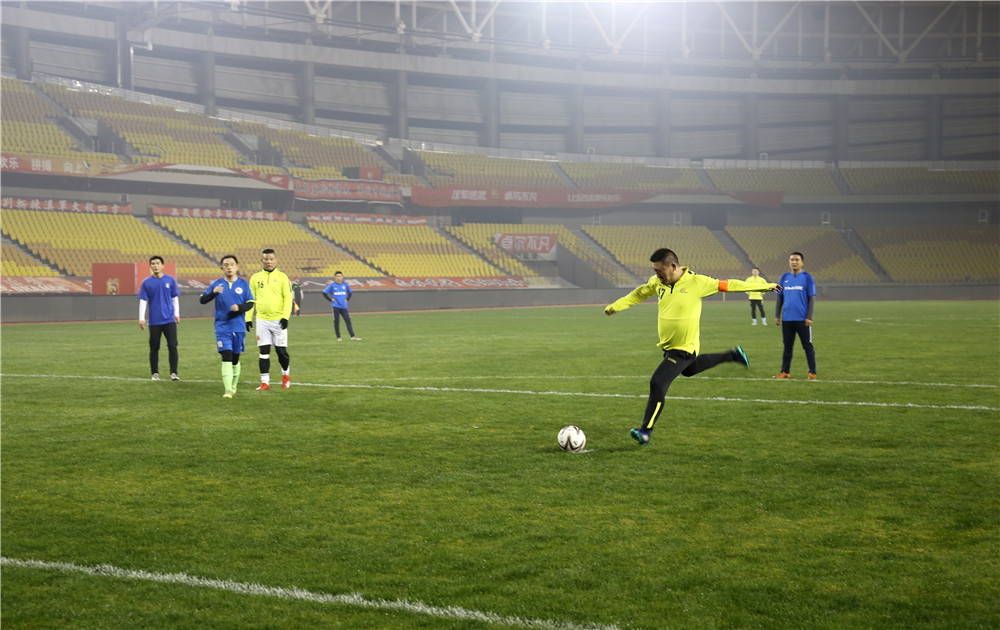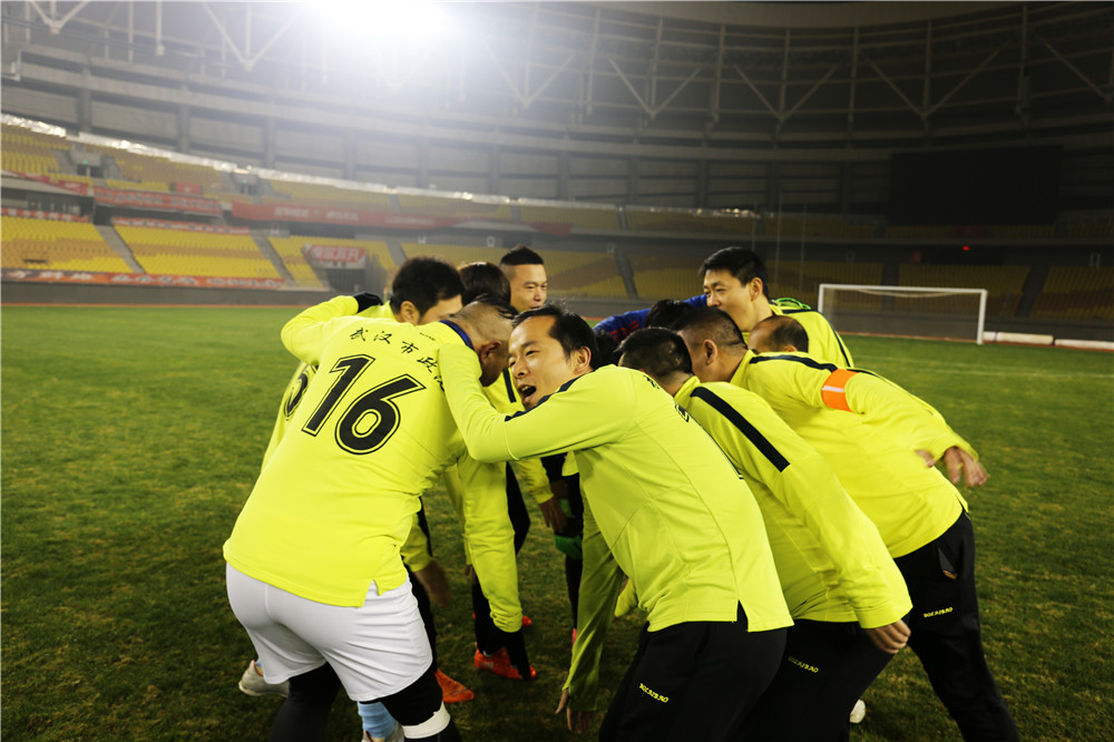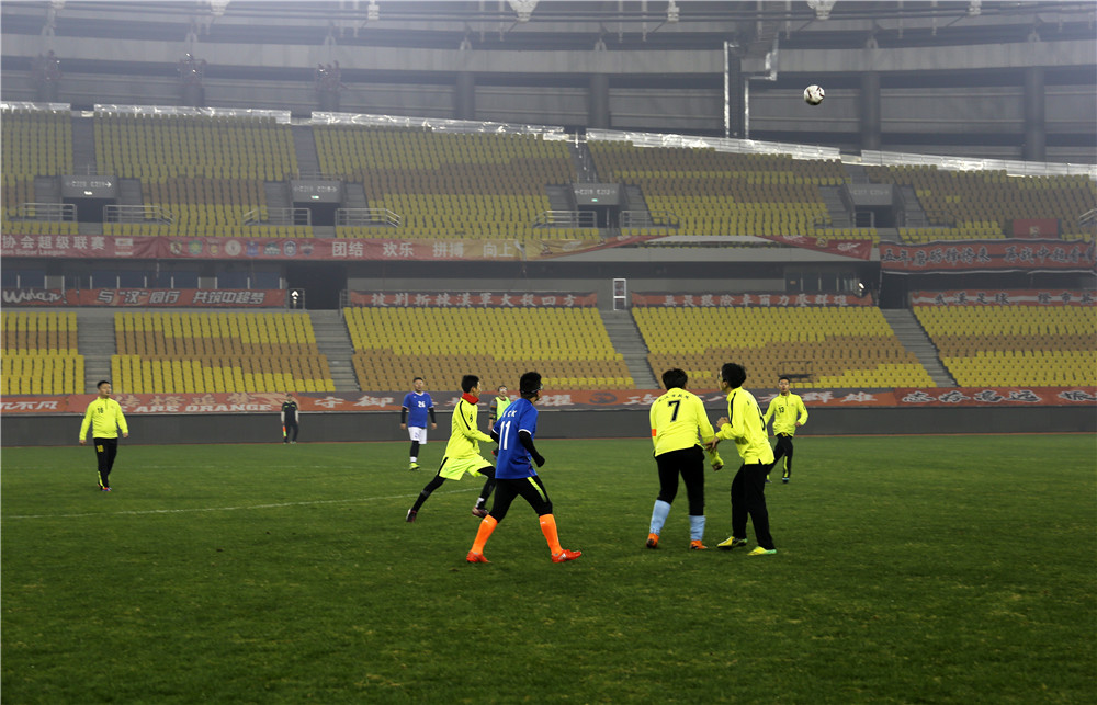 五環(huán)體育中心是武漢市為舉辦第七屆世界軍人運(yùn)動(dòng)會(huì)新建的規(guī)模最大的比賽場(chǎng)館,曾承擔(dān)了軍運(yùn)會(huì)足球、乒乓球、水上救生等項(xiàng)目的比賽。盡管軍運(yùn)會(huì)已經(jīng)過(guò)去近三個(gè)月了,但如今置身其中,仍然能感受到軍運(yùn)賽事帶來(lái)的澎湃與激情?;蛟S這種情緒也感染著場(chǎng)上的隊(duì)員們,他們從一開(kāi)始就迅速進(jìn)入了比賽狀態(tài),身穿藍(lán)色球衣的東西湖區(qū)聯(lián)隊(duì)在開(kāi)場(chǎng)不久便率先破門攻入一球,但公司的隊(duì)員們?nèi)匀环€(wěn)扎穩(wěn)打,很快就將比分扳平。重回同一起跑線的兩隊(duì)在隨后的比賽中更是你來(lái)我往,展開(kāi)了高質(zhì)量的攻防大戰(zhàn),比分交替領(lǐng)先,最終雙方又各進(jìn)四球,在一場(chǎng)精彩的進(jìn)球大戰(zhàn)后以5:5的比分握手言和。