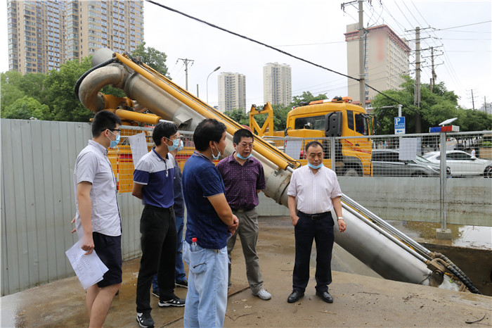為了詳細(xì)了解武漢市的內(nèi)澇漬水情況,準(zhǔn)確分析內(nèi)澇漬水成因,制定針對(duì)性的防汛排澇方案,7月8日上午,總經(jīng)理姚華帶領(lǐng)公司排水專業(yè)技術(shù)專家冒雨奔赴三鎮(zhèn)街頭,實(shí)地考察部分區(qū)域內(nèi)澇漬水情況和防澇排漬設(shè)施運(yùn)行情況,并就進(jìn)一步優(yōu)化區(qū)域排水方案、消除區(qū)域漬水隱患進(jìn)行了現(xiàn)場(chǎng)研討。