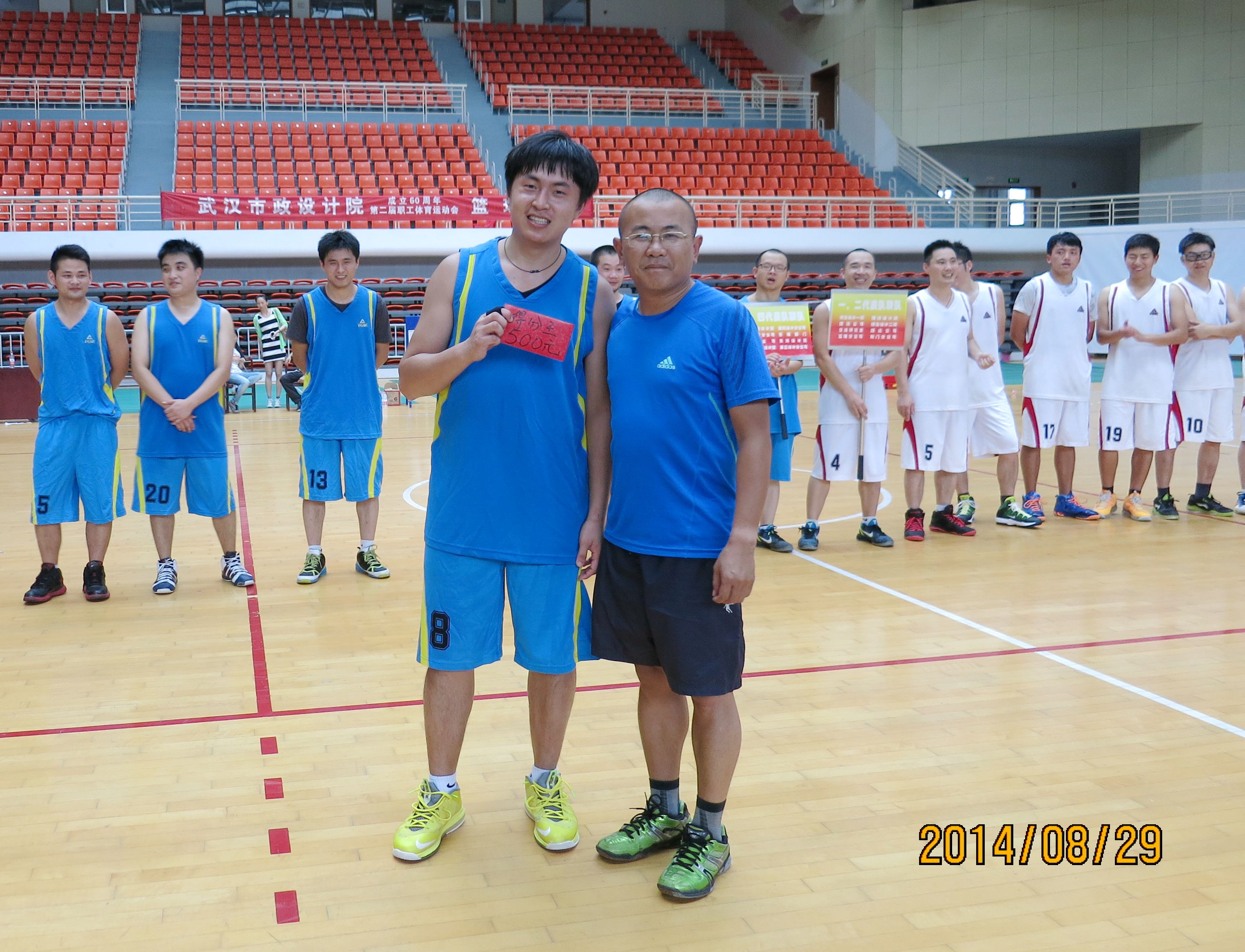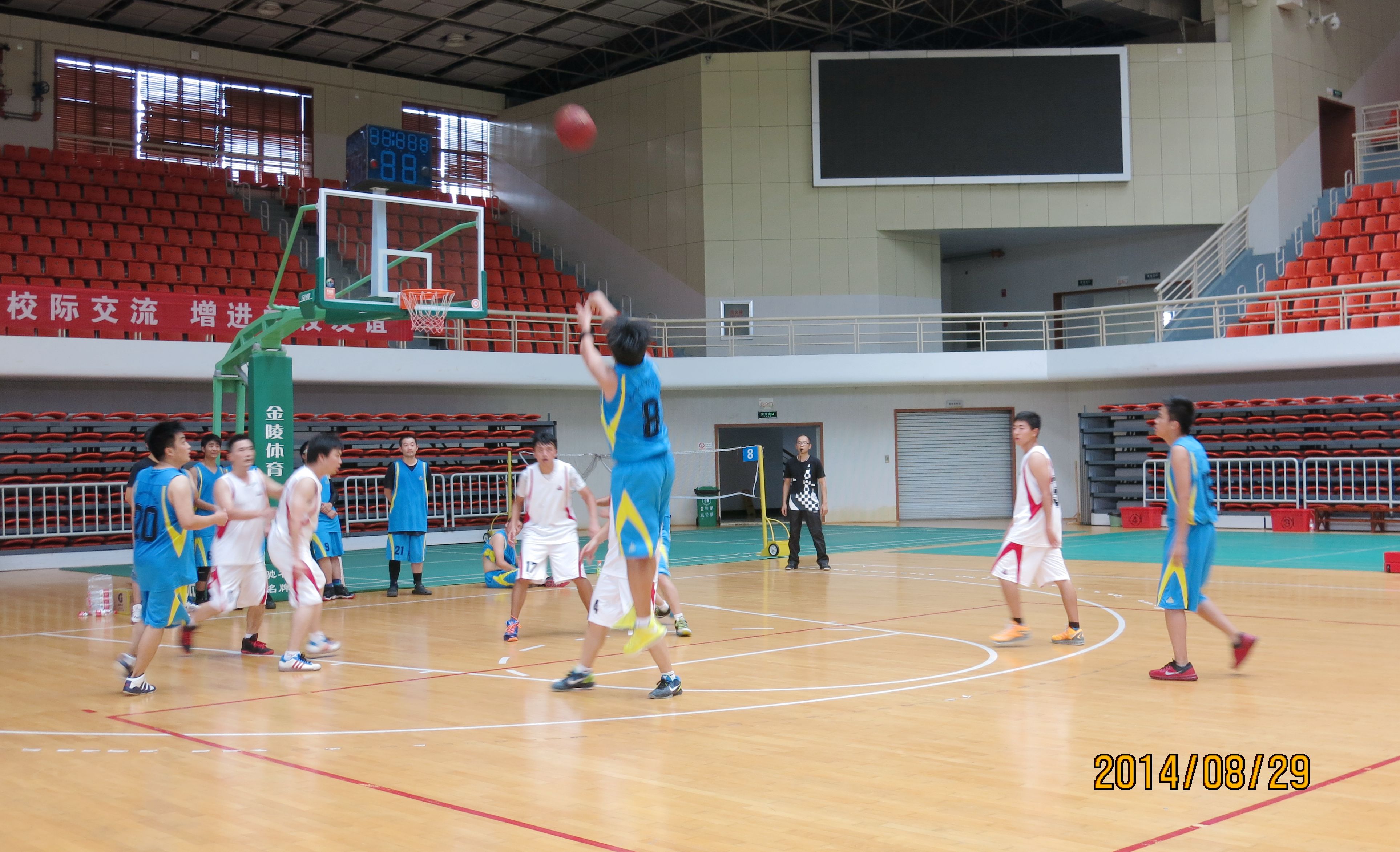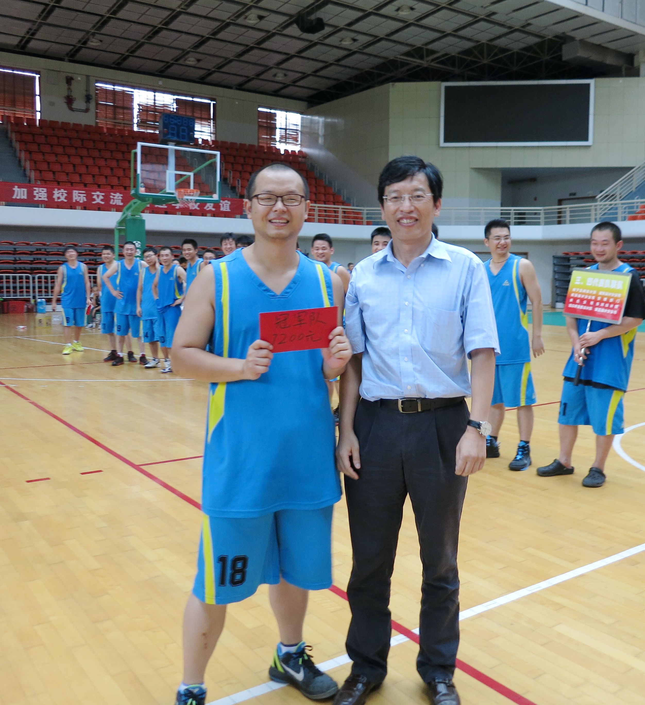 ??? 來自公司的八個分工會經(jīng)過抽簽,組成了兩支隊伍參加比賽,由于雙方實力相當,這場比賽在賽前就被認為是一場勢均力敵的比賽。但是,比賽開始后,一個人的出現(xiàn)就迅速打破了場上的均衡,他就是來自藍隊的王龍。他的突破和快攻頻頻得手,很快便為藍隊確立了領先優(yōu)勢。相比于藍隊的個人表演,白隊依靠的則是團隊配合,在克服了開賽之初球隊磨合不夠的困難后,白隊漸漸找到比賽的感覺,打出了多次漂亮的團隊配合,緊緊咬住比分。然而,第三節(jié)將近五分鐘的時間未能得分,還是讓他們缺少趕超比分后勁。隨著裁判的一聲哨響,比賽宣告結束,最終的比分定格在69:55,藍隊以14分的優(yōu)勢獲得了勝利,王龍更是一人獨得35分,榮膺了本場比賽的得分王。