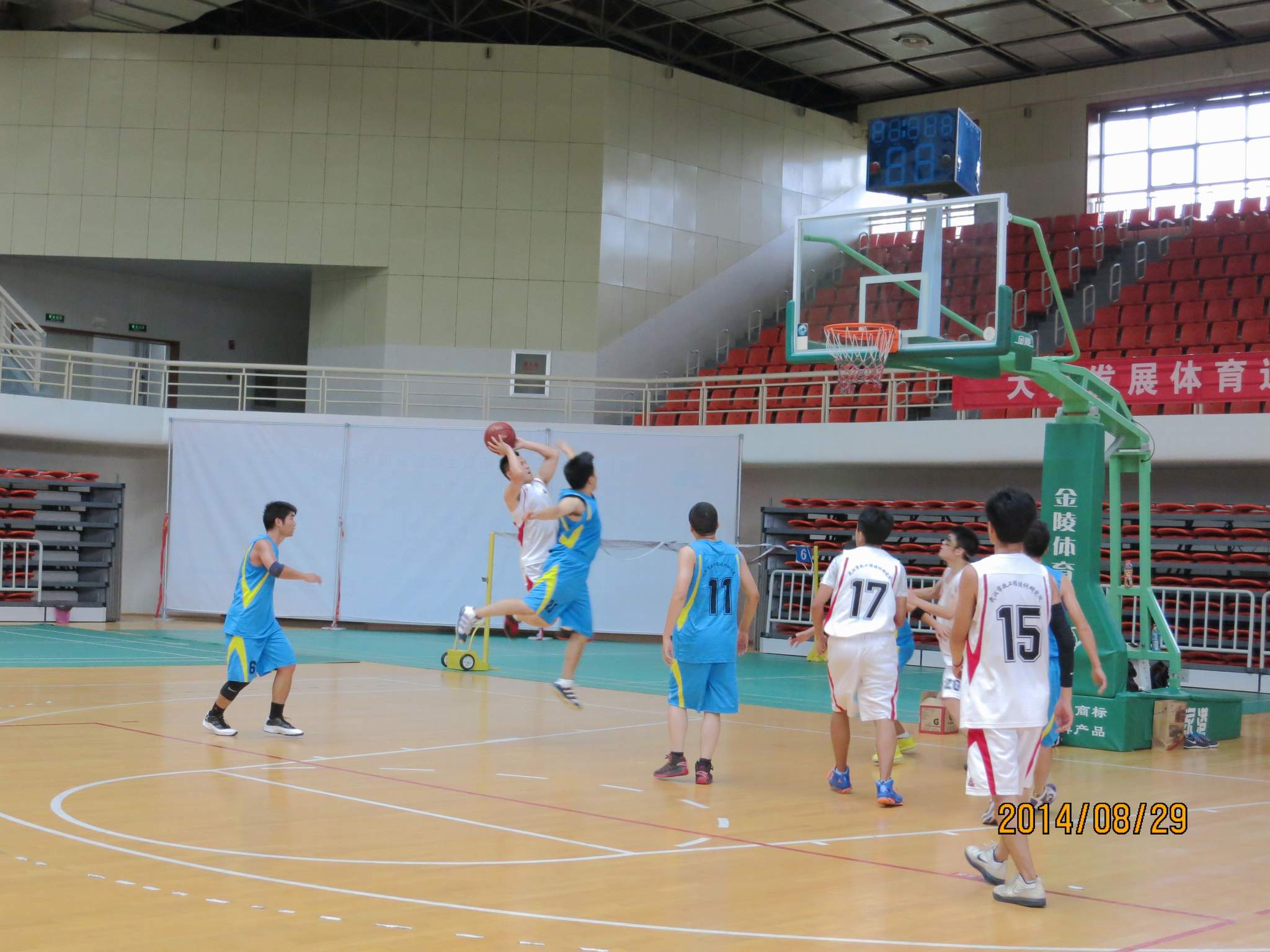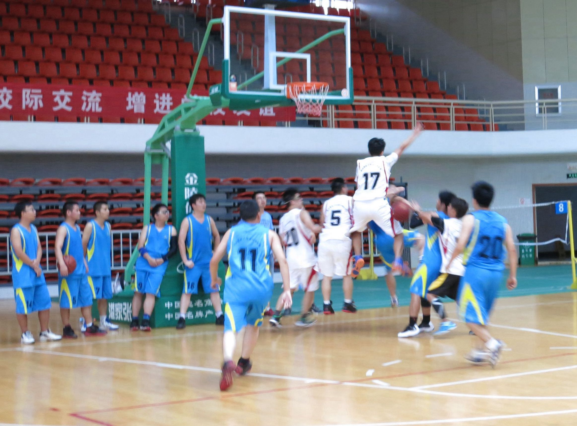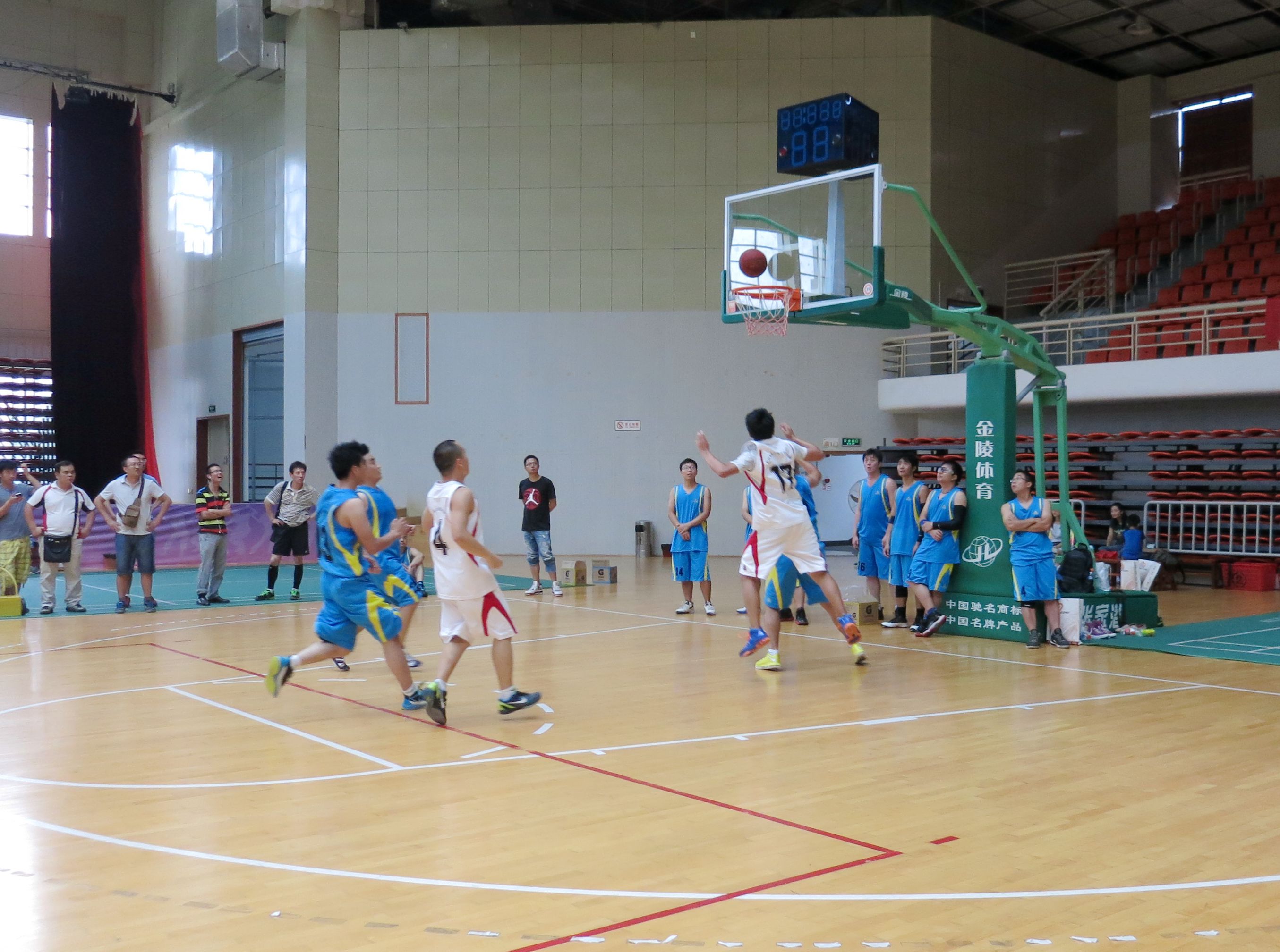 ??? 來自公司的八個分工會經(jīng)過抽簽,組成了兩支隊伍參加比賽,由于雙方實力相當,這場比賽在賽前就被認為是一場勢均力敵的比賽。但是,比賽開始后,一個人的出現(xiàn)就迅速打破了場上的均衡,他就是來自藍隊的王龍。他的突破和快攻頻頻得手,很快便為藍隊確立了領先優(yōu)勢。相比于藍隊的個人表演,白隊依靠的則是團隊配合,在克服了開賽之初球隊磨合不夠的困難后,白隊漸漸找到比賽的感覺,打出了多次漂亮的團隊配合,緊緊咬住比分。然而,第三節(jié)將近五分鐘的時間未能得分,還是讓他們缺少趕超比分后勁。隨著裁判的一聲哨響,比賽宣告結束,最終的比分定格在69:55,藍隊以14分的優(yōu)勢獲得了勝利,王龍更是一人獨得35分,榮膺了本場比賽的得分王。