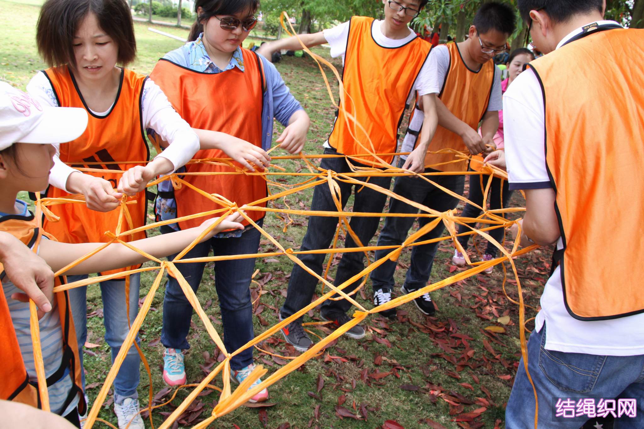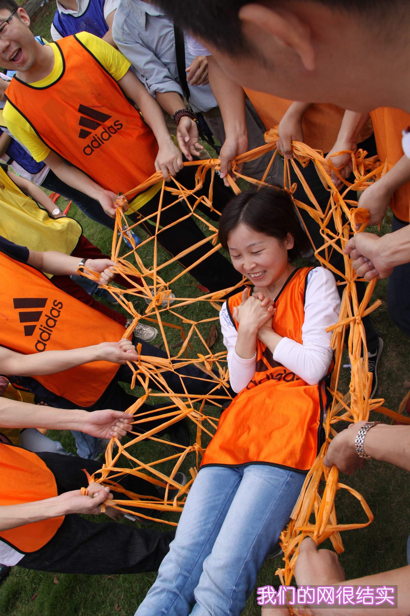 ??? 在第二個(gè)項(xiàng)目中,隊(duì)員們要用一捆塑料繩編織成網(wǎng),并要能承受一個(gè)人的重量。隊(duì)員們紛紛開動(dòng)腦筋,一齊動(dòng)手,很快便完成了任務(wù)。各支隊(duì)伍采用的編制方法不同,形狀也不同,但都能承受起一個(gè)人的重量,可以說不分伯仲。