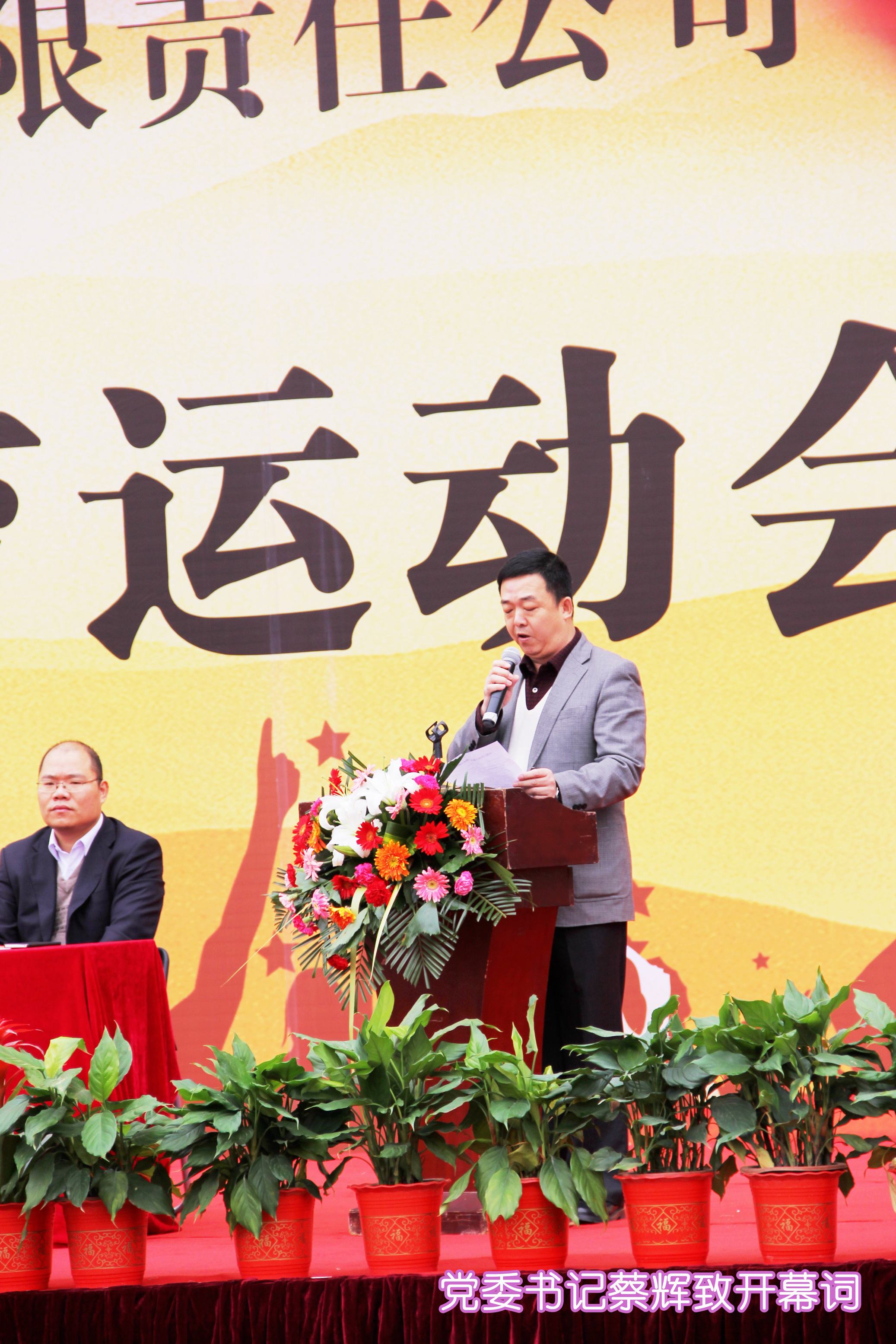 ??? 黨委書記蔡輝同志致開幕詞,他充分肯定了體育文化建設(shè)對(duì)公司各項(xiàng)工作的積極促進(jìn)作用,并希望廣大運(yùn)動(dòng)員發(fā)揚(yáng)“頑強(qiáng)拼搏,勇爭第一”的精神,以飽滿的情緒、激昂的斗志、團(tuán)結(jié)向上的精神投入到比賽中,超越自我,勇創(chuàng)佳績。