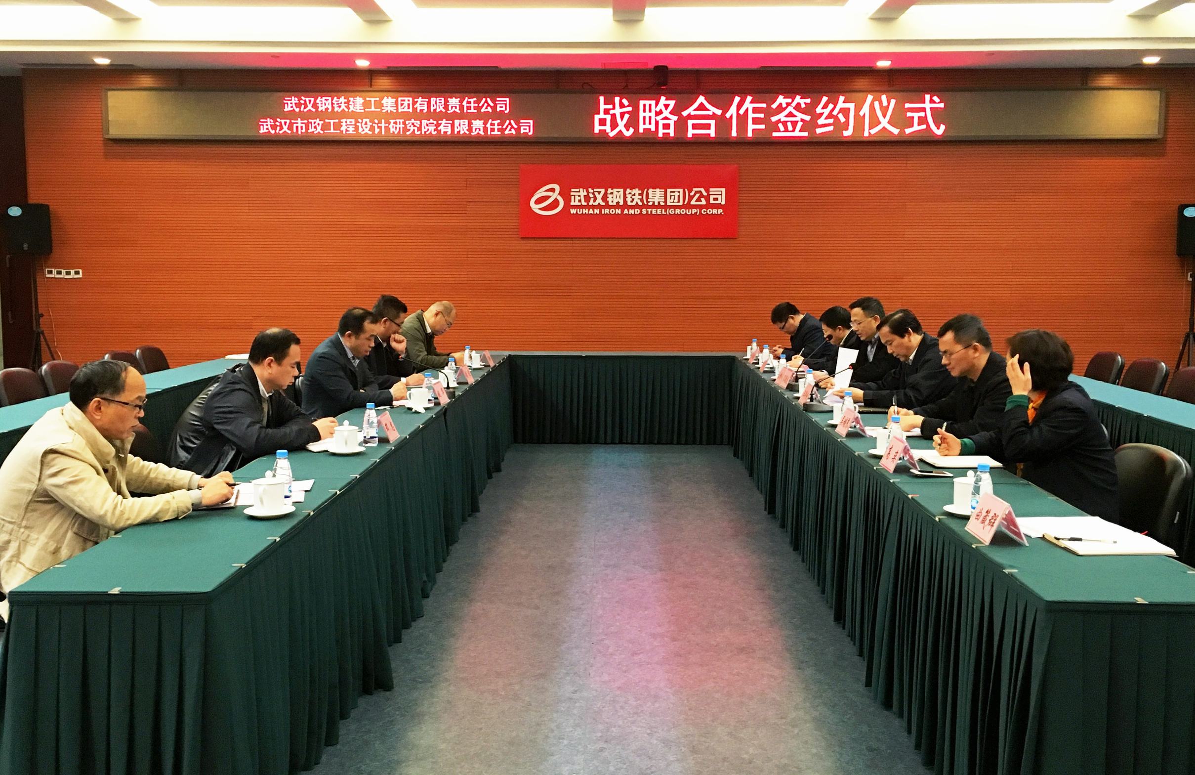 ??? 協(xié)議簽訂前,雙方進行了簡短的會談,公司總經理姚華和武鋼集團副總經理汪平剛就雙方各自的基本情況進行了介紹,并對雙方的戰(zhàn)略合作前景進行了展望。雙方一致認為,武漢市政院與武鋼建工集團在業(yè)務上具有很強的互補性,雙方期待以本次戰(zhàn)略合作協(xié)議簽訂為契機,建立信息共享、交流溝通和高層定期互訪機制,并以項目合作為突破口推進戰(zhàn)略合作協(xié)議落到實處,以期實現共同發(fā)展。