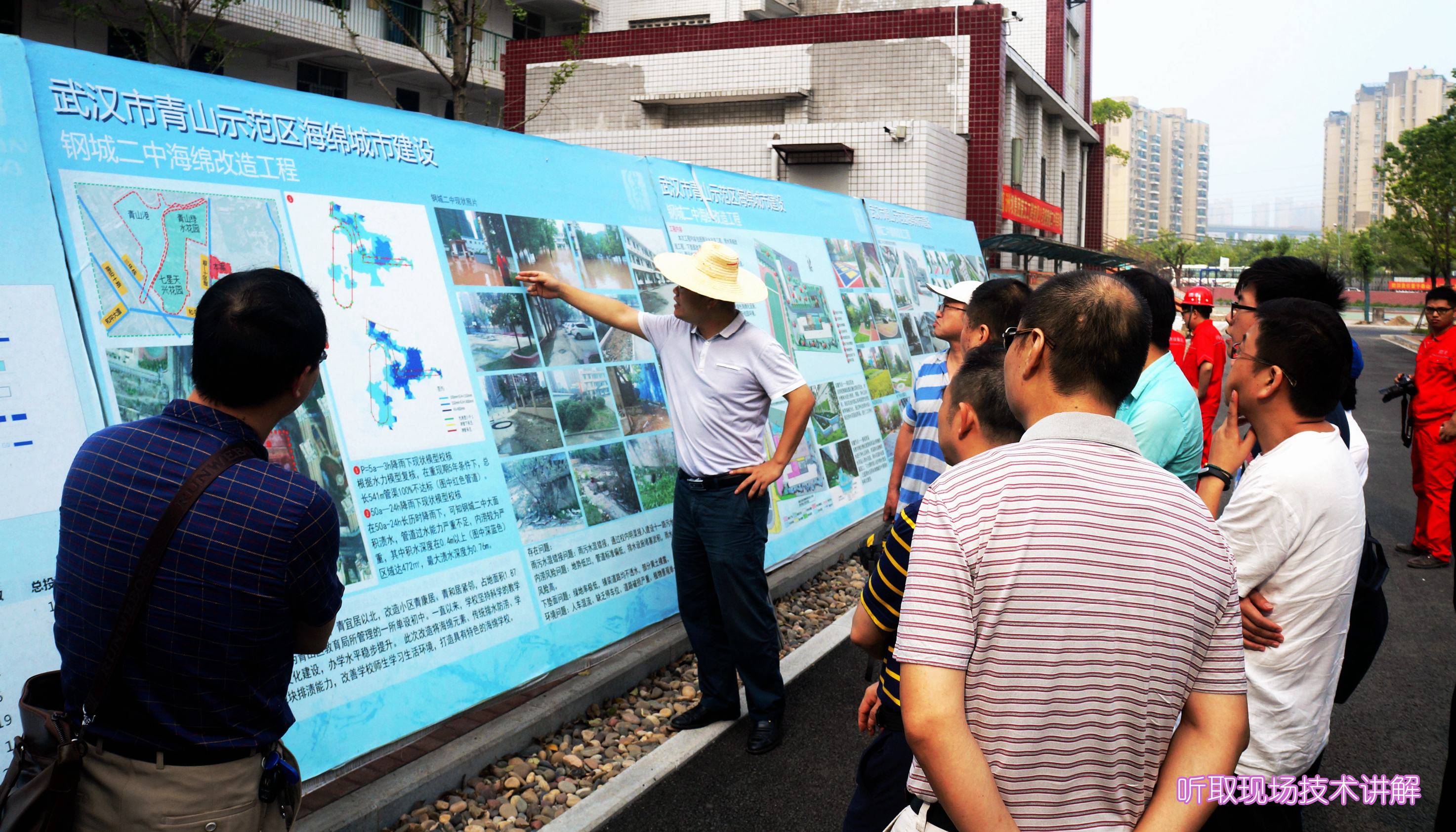 ??? 早上7點30分,參觀人員集中乘車,先后前往青山海綿城市建設(shè)示范區(qū)和四新海綿城市建設(shè)示范區(qū)進行實地參觀考察,聽取了公司主要設(shè)計人員關(guān)于海綿城市設(shè)計理念的介紹和取得的實際效果,并邀請施工單位負責人講解了海綿城市項目在施工中運用的技術(shù)和材料。參觀人員邊看邊聽邊記,詳細了解了海綿城市項目在設(shè)計、施工中的特點和需要注意的問題。