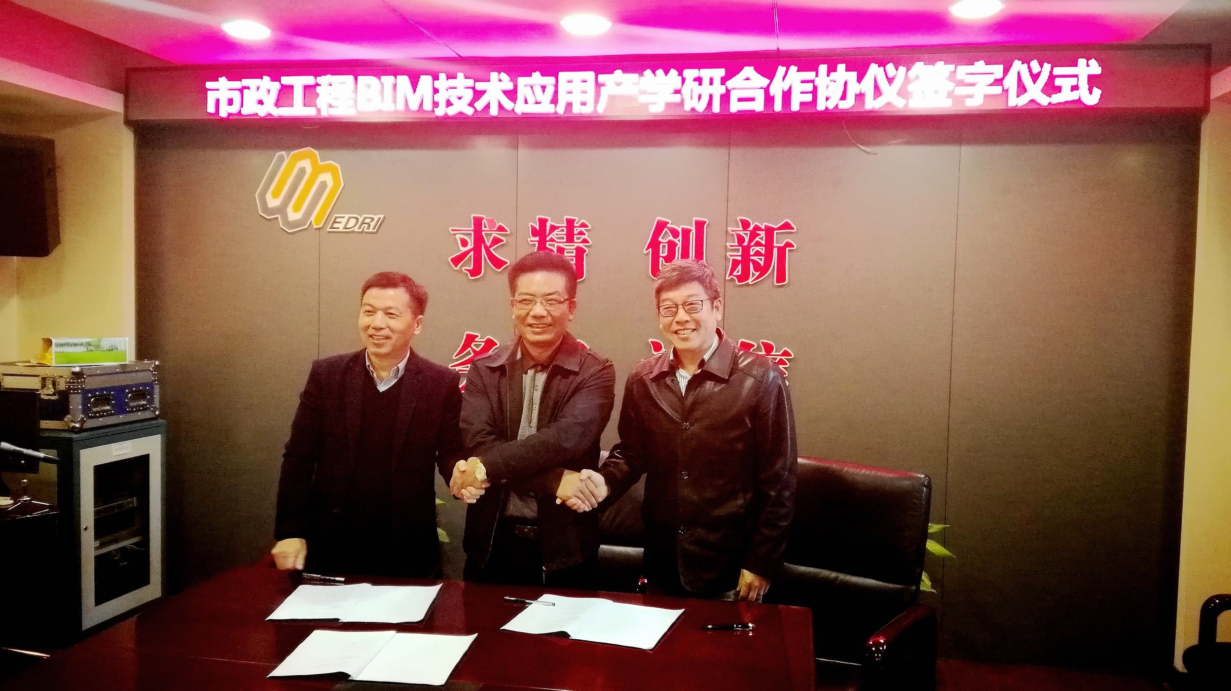 ??? 10月31日上午,市政工程BIM技術(shù)應(yīng)用產(chǎn)學(xué)研合作協(xié)議簽字儀式在公司西三樓會議室舉行,公司與武漢工程大學(xué)、上海同筑信息科技有限公司就BIM技術(shù)在市政工程全生命周期中的應(yīng)用達(dá)成合作協(xié)議,三方期望通過本次合作,推進(jìn)BIM技術(shù)在市政工程設(shè)計(jì)、施工、運(yùn)營維護(hù)等各階段的應(yīng)用。