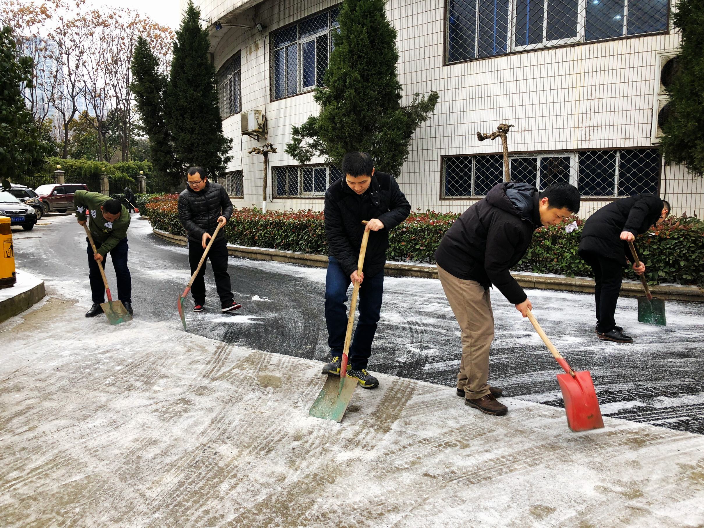 ??? 近日,武漢市迎來低溫雨雪天氣,公司內部及周邊道路出現(xiàn)結冰情況,極易出現(xiàn)行人滑到和車輛打滑現(xiàn)象,存在極大安全隱患。