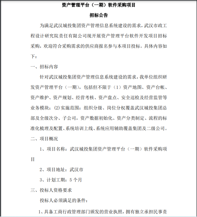資產(chǎn)管理平臺(一期)軟件采購項(xiàng)目 招標(biāo)公告